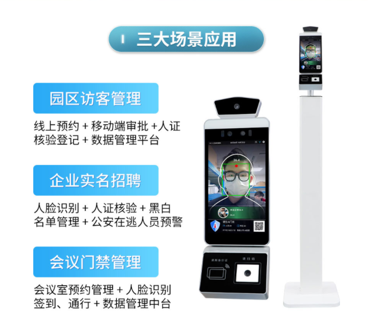 数字哨兵的升级从三方面拓展,充分满足不同类型的用户的不同需求。访客管理方面:顺利获得线上预约+移动端审批+人证核验登记+数据管理平台的模式,充分解决了访客拜访的问题。企业招聘方面:人脸识别+人证核验+黑白名单管理+公安在逃人员预警;在实名方面保障每个面试人员的实名性。不仅如此金鼎盛世还推出了新的会议门禁套餐,顺利获得会议室预约管理+人脸识别签到、通行+数据管理中台,充分解决员工的会议考勤问题。